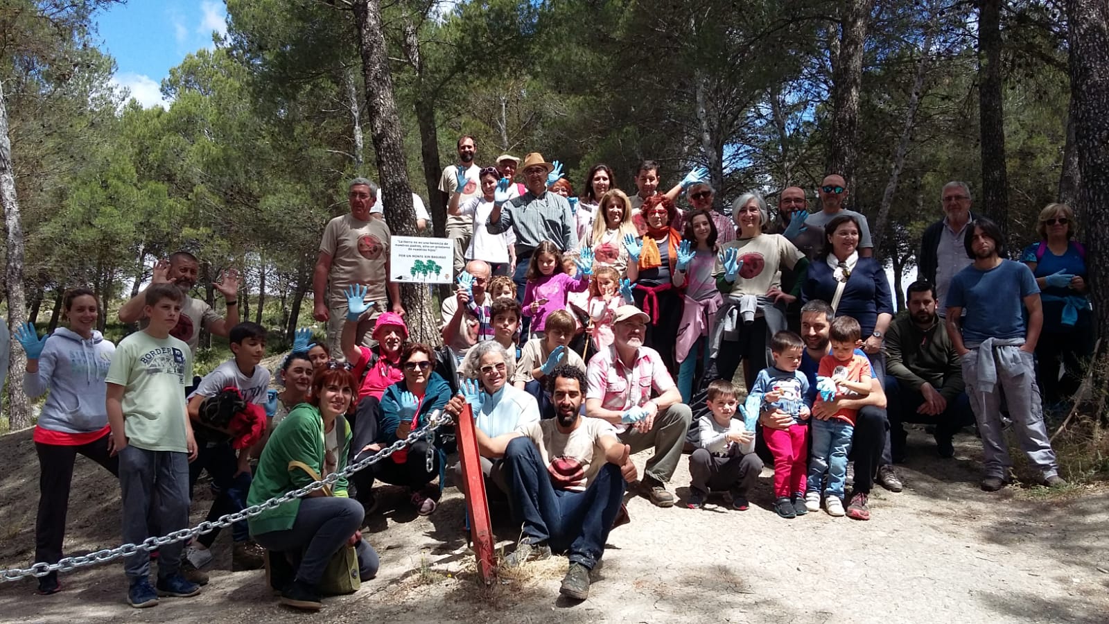 Solo con diez minutos de paseo recogimos 6 bolsas grandes de comunidad de residuos. Además completamos la actividad con la colocación de un cartel para recordar que el pinar hay que cuidarlo.